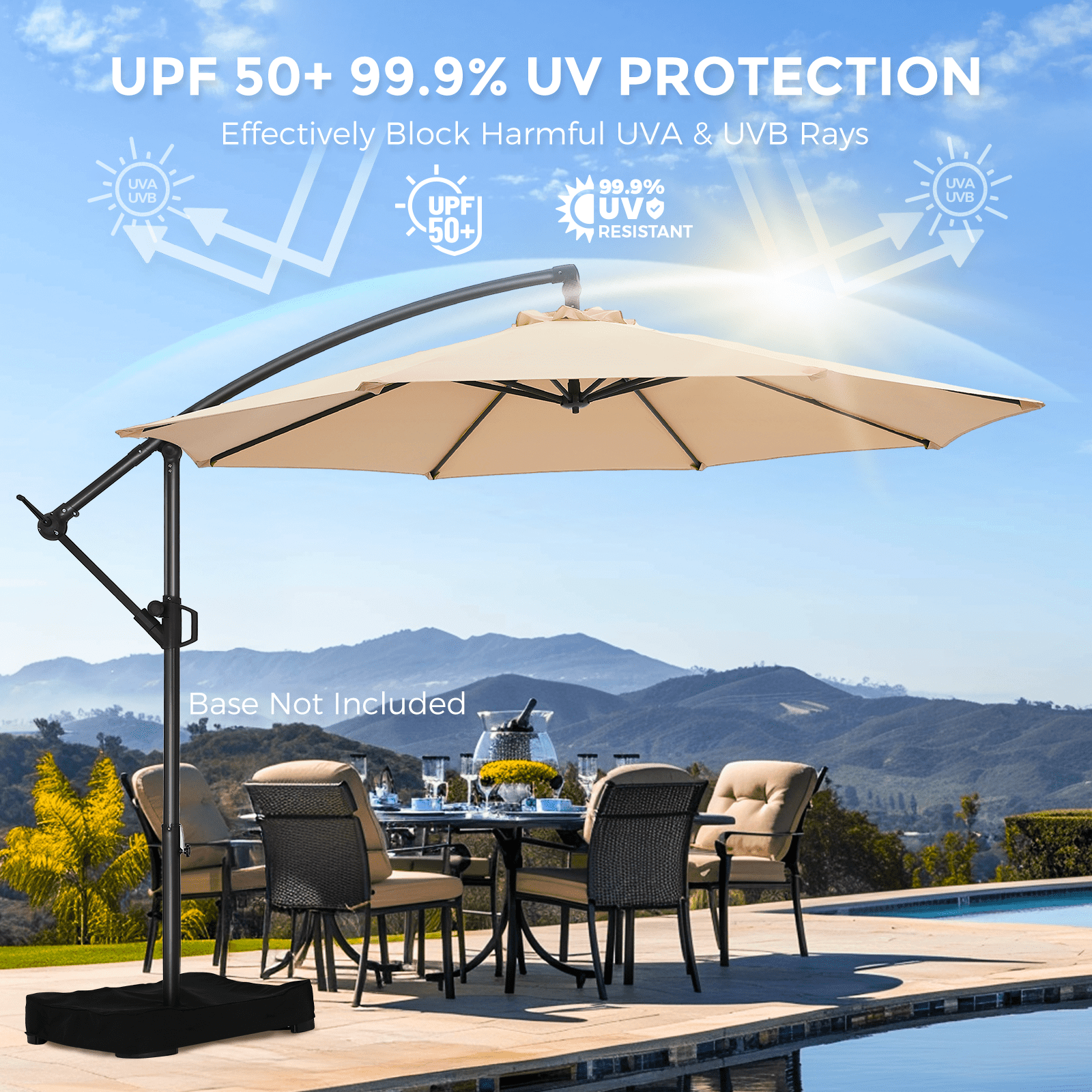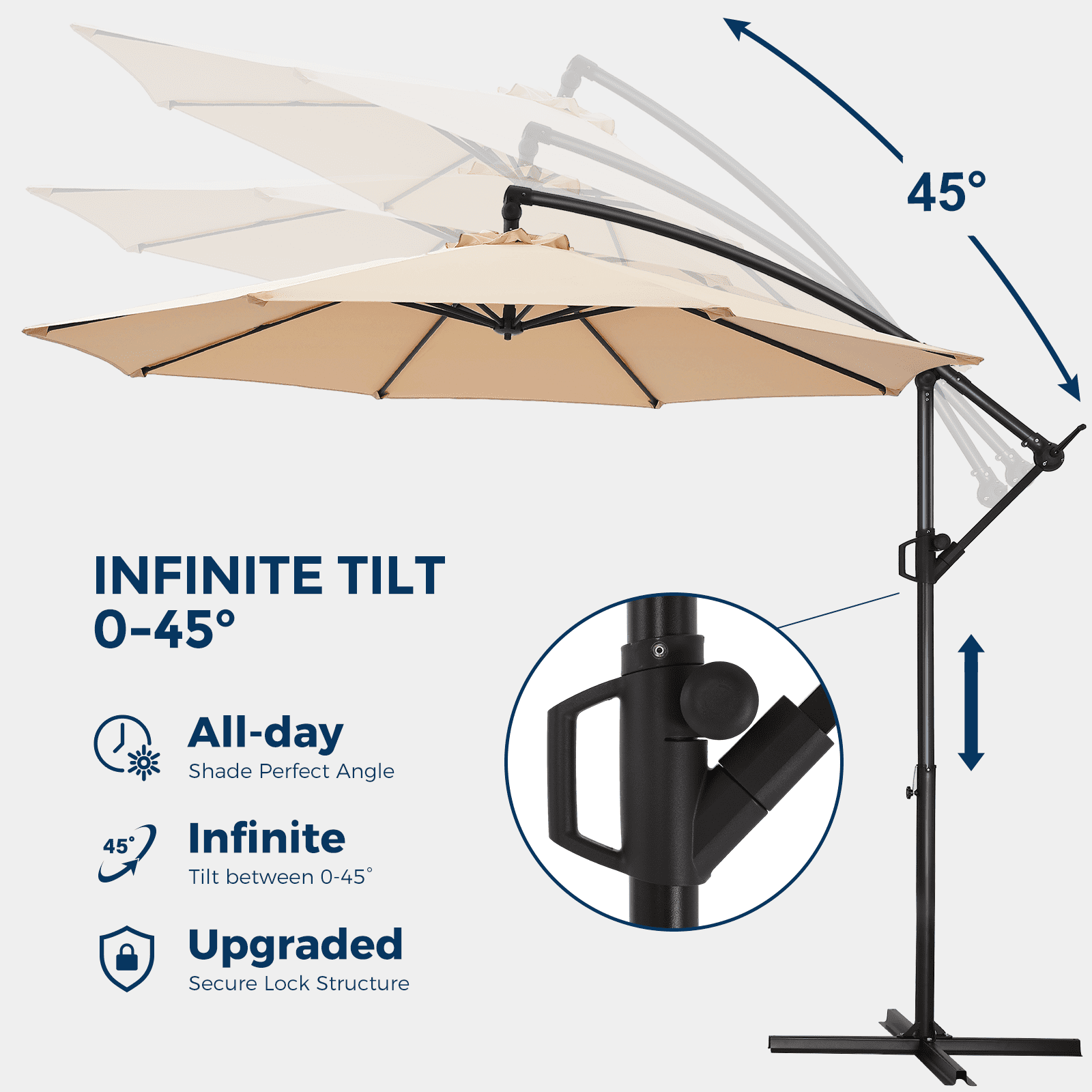 10ft Cantilever Patio Umbrella,360-Degree Rotation Hanging Offset Market Outdoor Sun Shade for Backyard,Deck,Poolside,Easy Tilt,Beige