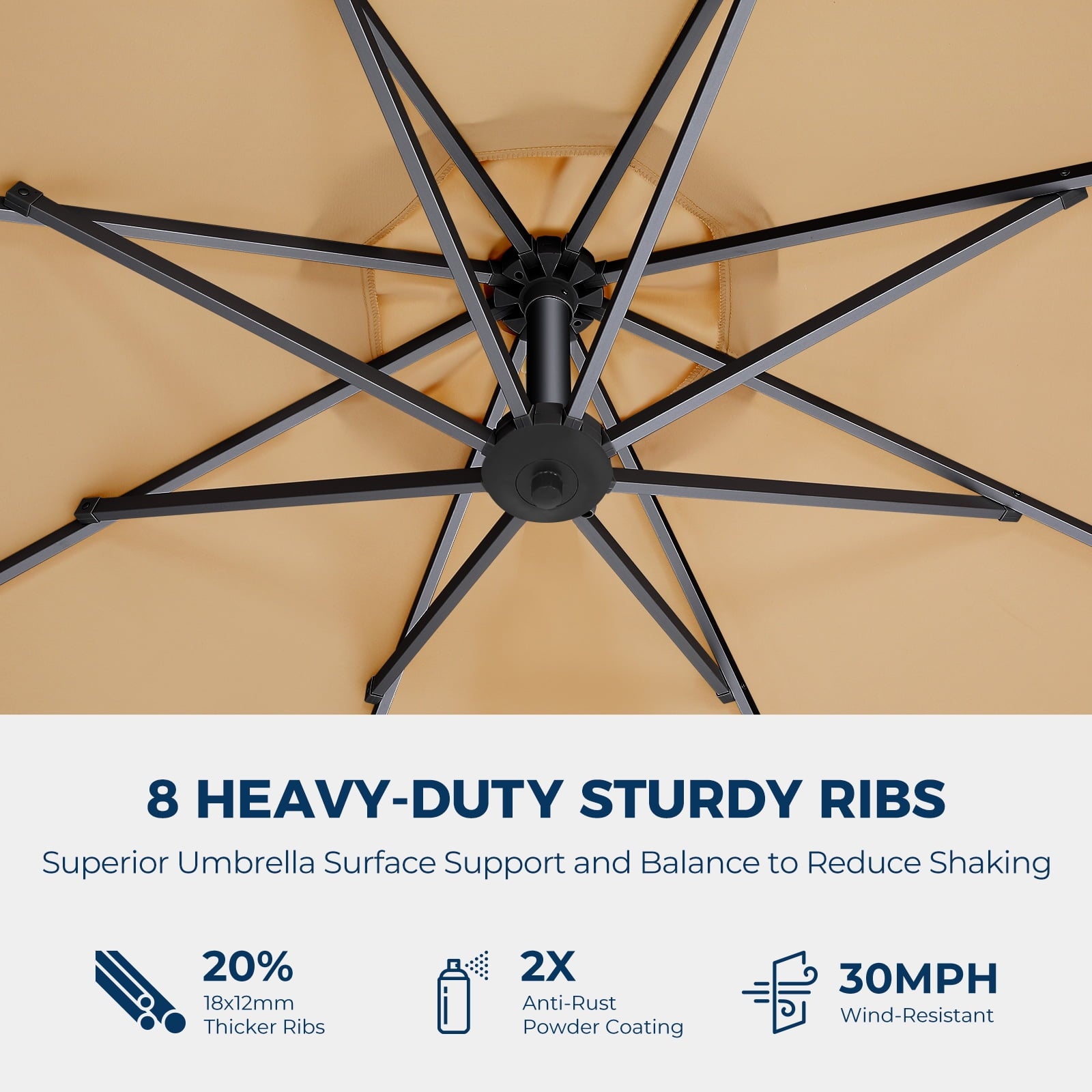 10ft Patio Umbrellas Offset,Outdoor Umbrella Cantilever Hanging Umbrellas with Infinite Tilt,Fade Resistant Waterproof Fabric & Base,for Yard,Garden,Home,Pool & Deck,Beige