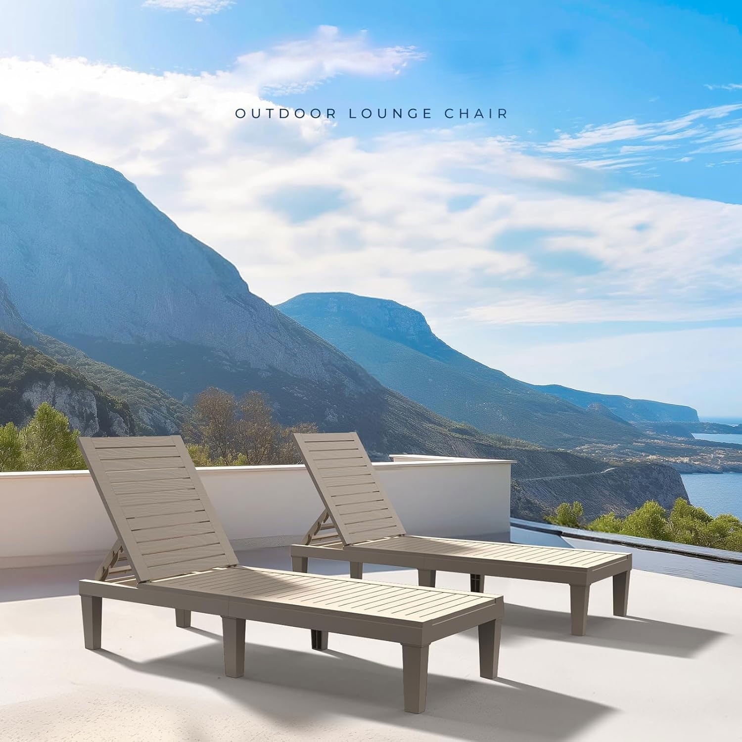 Chaise Lounge Chair Outdoor 1PCS - 5 Positions Adjustable Backrest, Waterproof, Easy Assembly, with 330lbs Weight Capacity for Pool, Resin