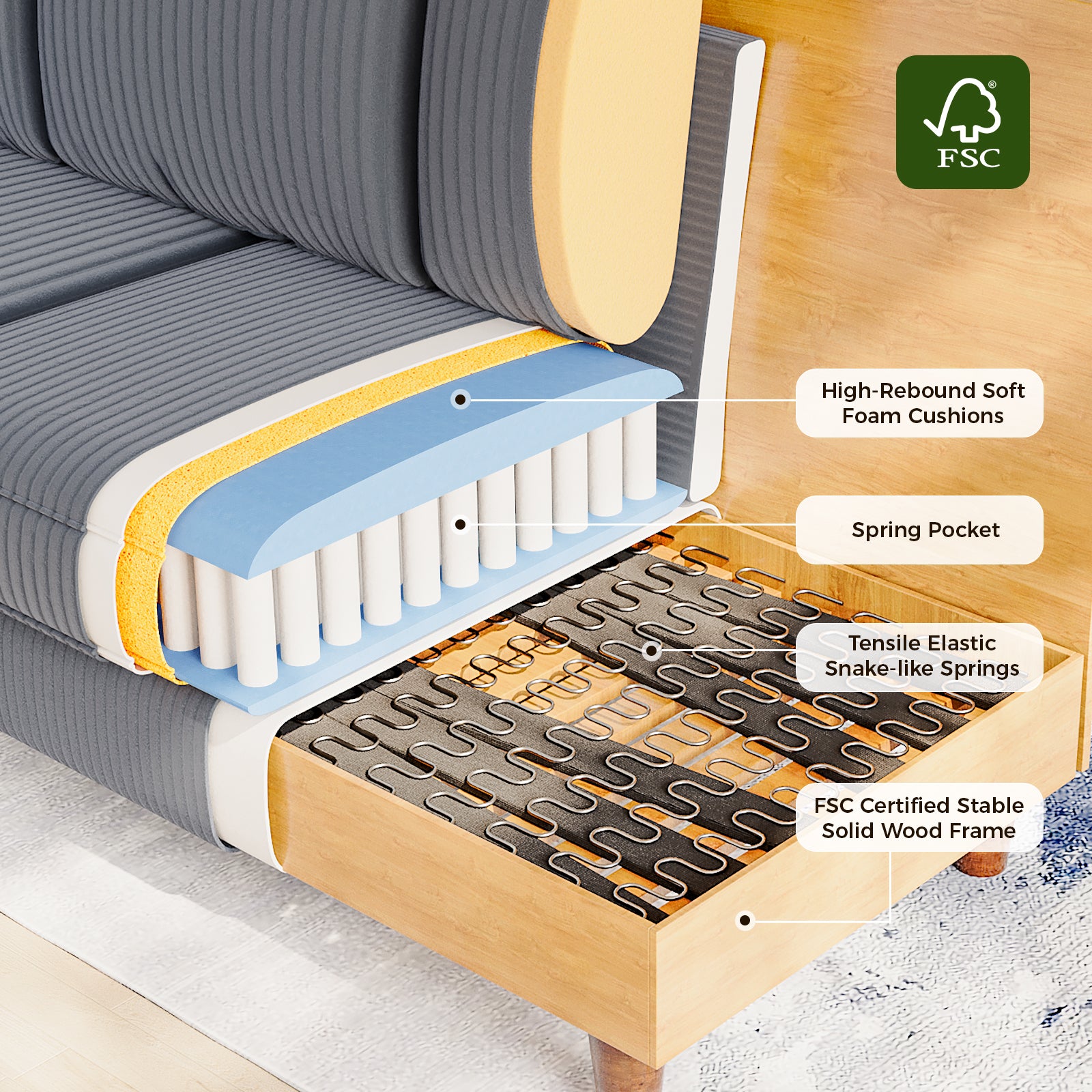 High-density sponge + independent pocket spring + bandage snake spring + solid wood, it won't collapse even after sitting for a long time, with a maximum load capacity of up to 1000lb.