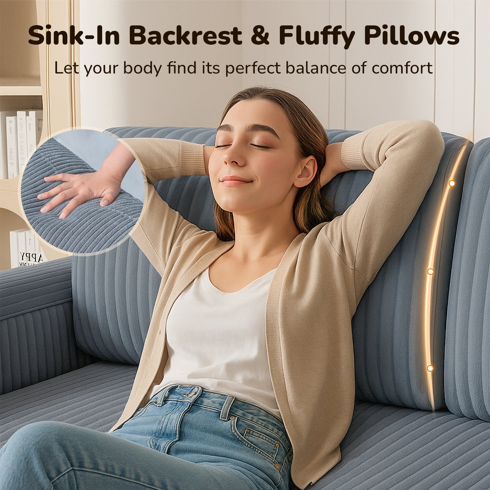 ποΈ Relax at home and enjoy the comfort of the extra-wide sofa: After a busy day, come home and lie on this big sofa and all your fatigue vanishes in an instant. The spacious seats and comfortable backrests create a special relaxing space for you, allowing you to immerse yourself in the rare leisure time.