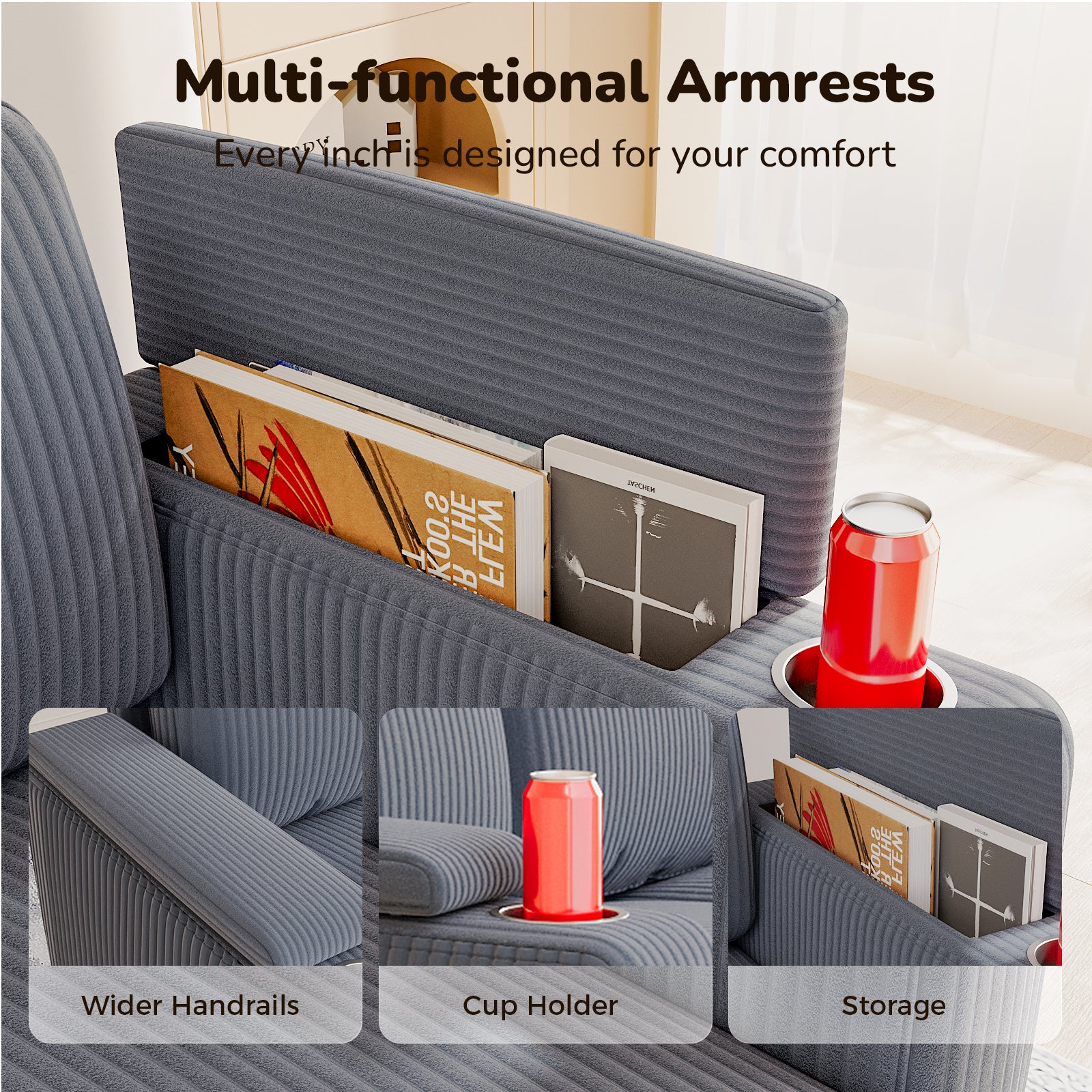 The 8-inch ultra-wide armrest accommodates all your comfortable postures. Hide the storage function and cup holder, and all the snacks on the remote control.